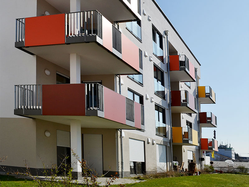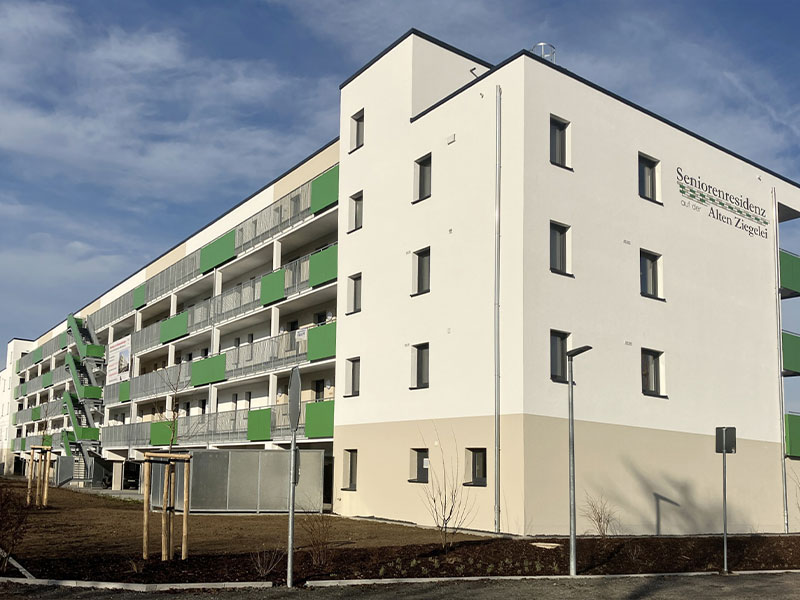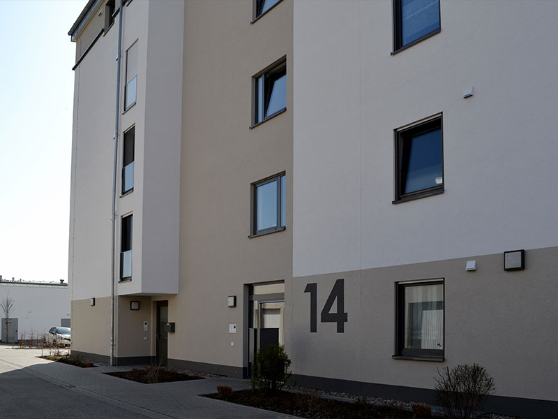 Errichtung von vier Neubauten mit jeweils 14 Wohneinheiten. Insgesamt umfasst die Wohnanlage 8 Gebäude mit über 100 Eigentumswohnungen.